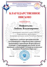 А 27 октября этого года Ассоциация и Карельский институт развития образования организовали и провели Всероссийский семинар «Современный школьный музей: традиции и инновации», на котором познакомили Россию с лучшими музейными практиками Карелии. Из восьми докладчиков - четверо - представители Совета Ассоциации, которые в течение года выступают с трансляцией своего опыта на различных площадках города. Л.В. Нифантьева представила гражданско-патриотический проект «Память и время», объединивший 10 музейных школ и за 17 лет своего существования не потерявший своей актуальности.