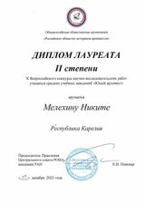 Наш поисковый клуб «Север», которому осенью 2024 г исполнится 40 лет, не один раз участвовал в этом конкурсе и побеждал. Но награду Всероссийского конкурса – Диплом 2 степени - мы завоевали впервые! Никита Мелехин, председатель Молодежного поискового клуба «Север», буквально на днях получил этот Диплом, подписанный академиком РАН – Е.И.Пивоваром. Думаю, не случайно исследовательская работа Никиты, над которой он в прошлом году работал с Л.В.Нифантьевой, руководителем клуба «Север», получила такую оценку.