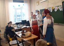 Они не только ярко представили быт вепсской крестьянской семьи, но и продемонстрировали предметы прошлого: ступу, пест, кошель, веретено и другие. Конечно, необычно было видеть северян, которые всегда в военных рубашках, а тут – в сарафанах и крестьянском одеянии! А все дело в том, что ребята только что вернулись с 33 московского слета юных исследователей истории Отечества, который был посвящен народной культуре России и промыслам, и сказку свою показывали там. Ведь это тоже еще одна культурная грань нашей любимой России, и все вкупе формирует прекрасное чувство, которое должно жить в сердце каждого из нас!