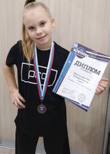 Еще одной победительницой турнира стала ученица 3Б класса Камилла Бусарова. Она выступала вместе со своей командой и заняла почётное 3 место в категории "Хип-хоп".